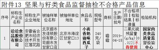 被列入坚果与籽类食品监督抽检不合格产品列表中,不合格的原因是二氧化硫残留量达0.22g/kg,而相应标准规定是不得使用二氧化硫等添加剂熏制瓜子。